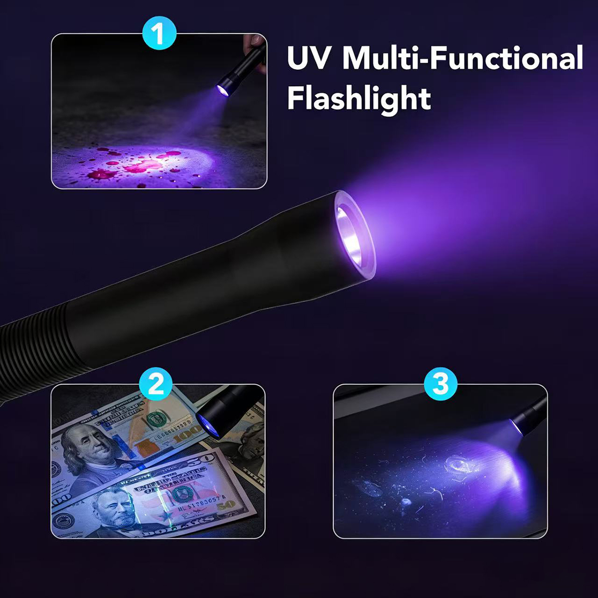 ElLinterna 2AAA-UVestá equipado con un equipo altamente especializado y dedicadoLED UV de 365nm. A 365 nm, el emisor produce casi cero interferencia de luz visible. Cuando se dirigen a materiales reactivos, los fósforos objetivo absorben la energía UV invisible y emiten una fluorescencia brillante y de alto contraste contra un fondo completamente negro. Esta capacidad superior de detección es obligatoria en varios sectores críticos: