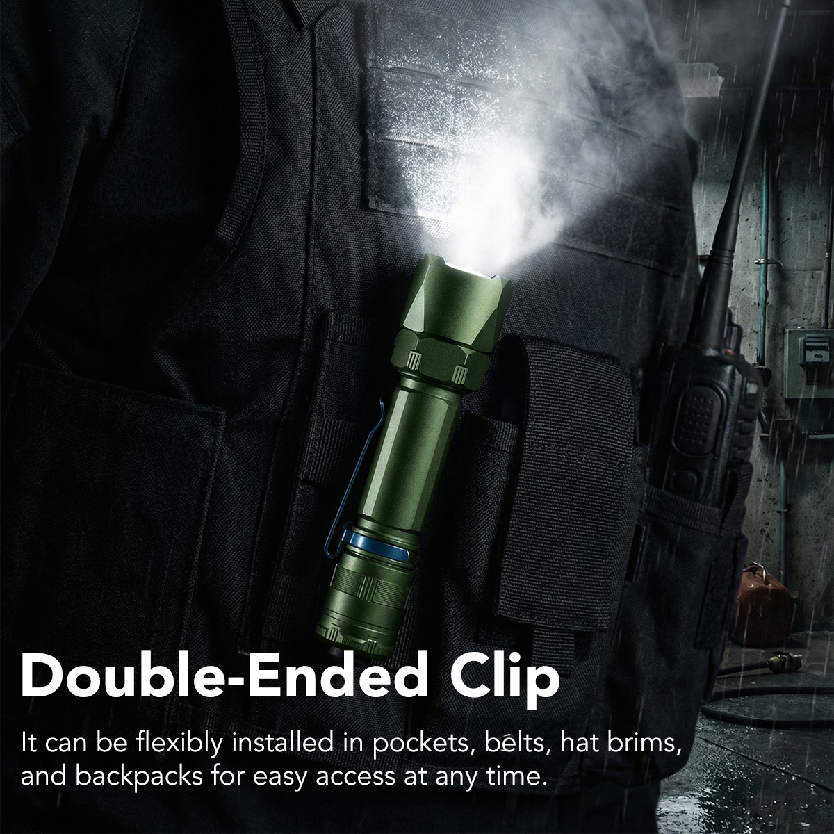 El compañero definitivo de EDC. Equipado con un robusto clip de doble dirección, puedes sujetar el T6 de forma segura a cinturones, bolsillos o incluso al ala de un sombrero para usarlo manos libres, asegurando que siempre esté al alcance.