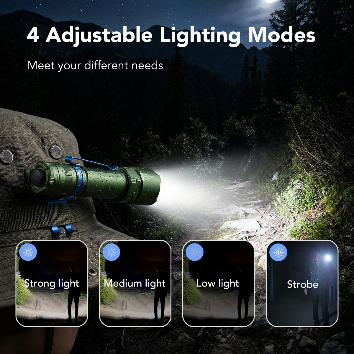 El T6 es una potencia táctica diseñada para quienes requieren un alcance extremo en un formato compacto EDC. Impulsado por el moderno LED Luminus SFT-25, ofrece un haz penetrante de 1300 lúmenes que atraviesa la oscuridad hasta 457 metros. Con una certificación IP68 de impermeabilización, estroboscópico de acceso instantáneo para defensa personal y un clip versátil de doble vía, el T6 es la herramienta definitiva para profesionales de la seguridad, aventureros al aire libre y preparación diaria.